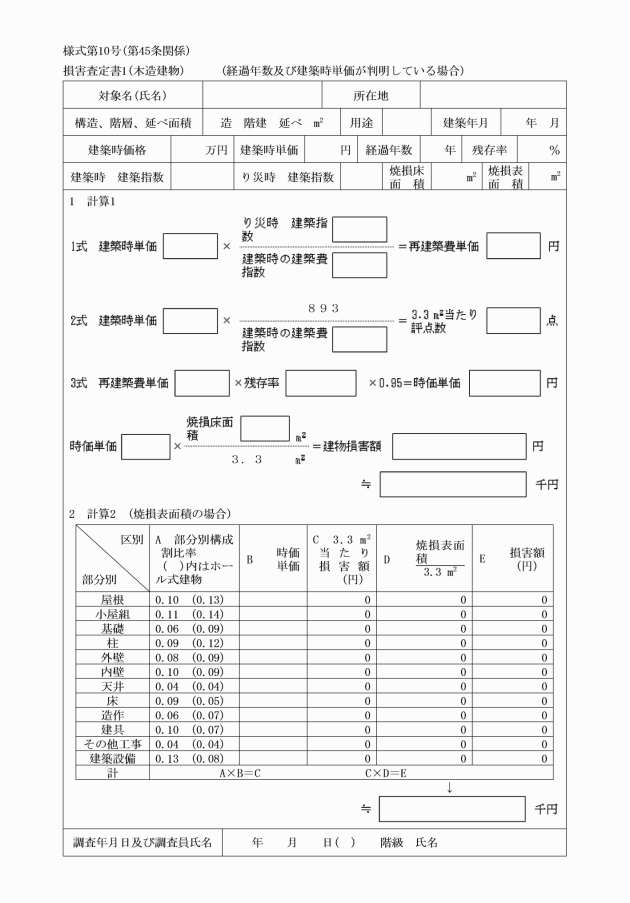 第45条 火災損害調査は、り災物件を詳細に調査し、損害の把握に努めなければならない。