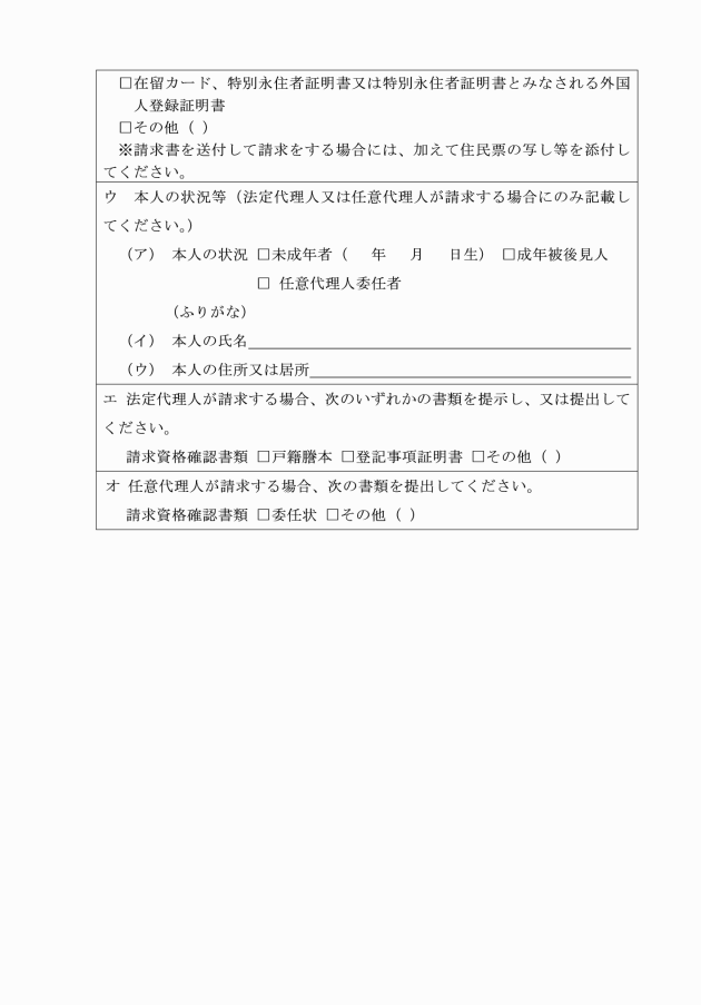 (1) 開示請求書、訂正請求書又は利用停止請求書(以下この条において「開示請求書等」という。)に記載されている開示請求をする者、訂正請求をする者又は利用停止請求をする者(以下この条において「開示請求者等」という。)の氏名及び住所又は居所と同一の氏名及び住所又は居所が記載されている運転免許証、健康保険の被保険者証、行政手続における特定の個人を識別するための番号の利用等に関する法律第2条第7項に規定する個人番号カード、出入国管理及び難民認定法第19条の3に規定する在留カード、日本国との平和条約に基づき日本の国籍を離脱した者等の出入国管理に関する特例法第7条第1項に規定する特別永住者証明書その他法律又はこれに基づく命令の規定により交付された書類であって、当該開示請求者等が本人であることを確認するに足りるもの